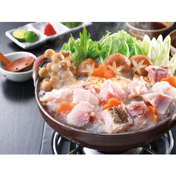 くえ切身(長崎産)180g、くえあら(長崎産)180g、くえしゃぶ用切身(長崎産)100g、ポン酢20g4個、だし昆布5g2個