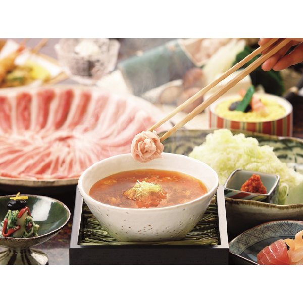 丸皿入り豚肉110g×3皿、特製つけだれ300cc×2袋、そば80g、柚子唐辛子10g