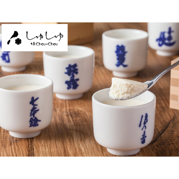 お猪口入 生チーズケーキ 55g×6蔵(喜楽長、松の司、美冨久、七本鎗、萩乃露、浪乃音)、酒粕ビスコッティ 4本