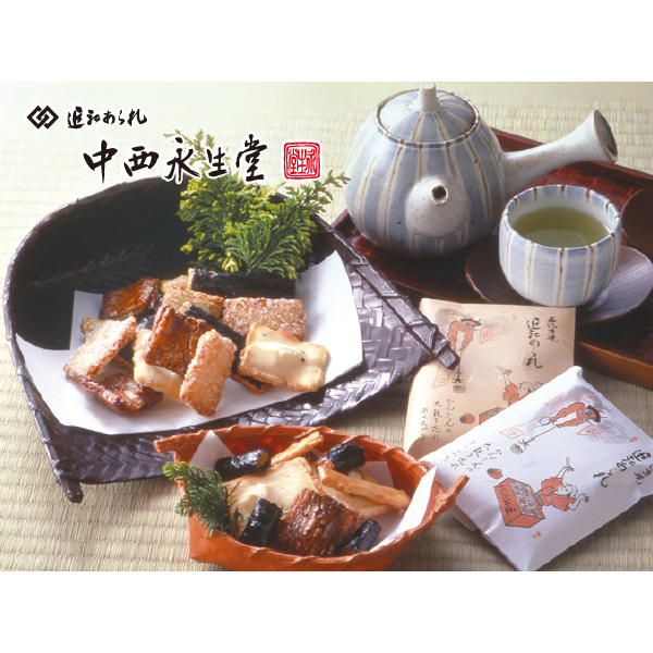 大津絵小袋茶3袋、のり巻・桜3袋、鬼山椒2袋、えび・青のりサラダ2袋、藤娘2箱、いっぷく日和3袋