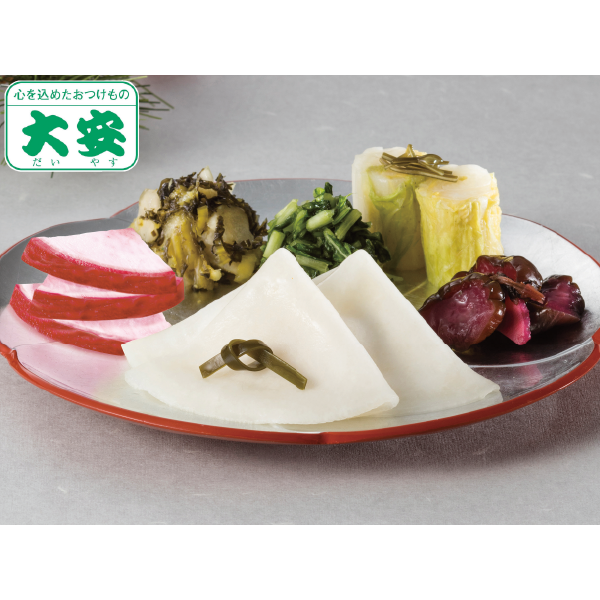 千枚漬70g×3、赤かぶら切漬62g、こぶ漬白菜132g、壬生菜漬40g、あさごぼう40g、味すぐき40g、赤しそ胡瓜40g