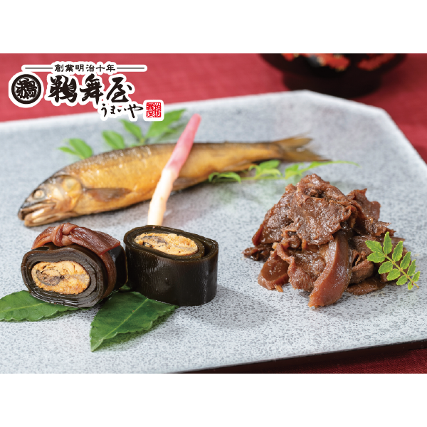 鮎昆布巻190g、牛肉しぐれ70g、鮎すがた煮75g