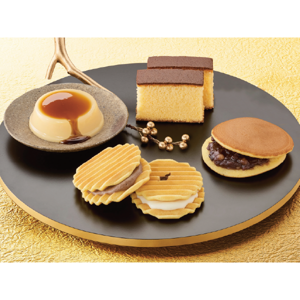 カステーラ5切れ×2袋、珈琲ヴァッフェル・みたらしぷりん×2個、ヴァッフェル×3個、栗みかさ×5個