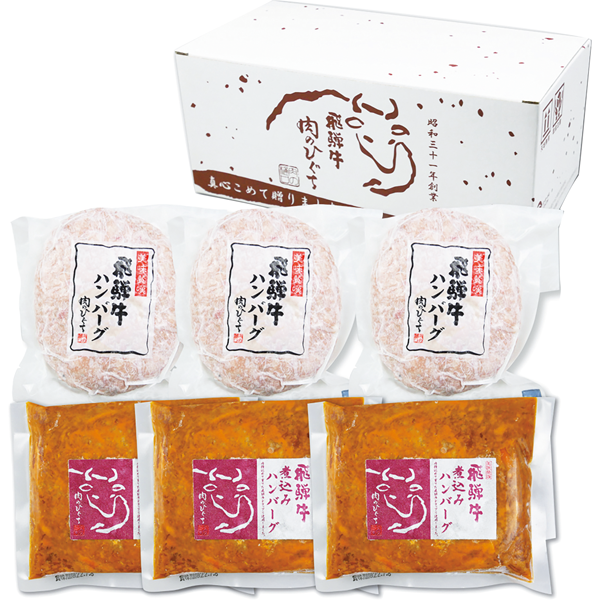 飛騨牛生ハンバーグ120g×3、飛騨牛煮込みハンバーグ240g×3(固形120g、ソース120g)