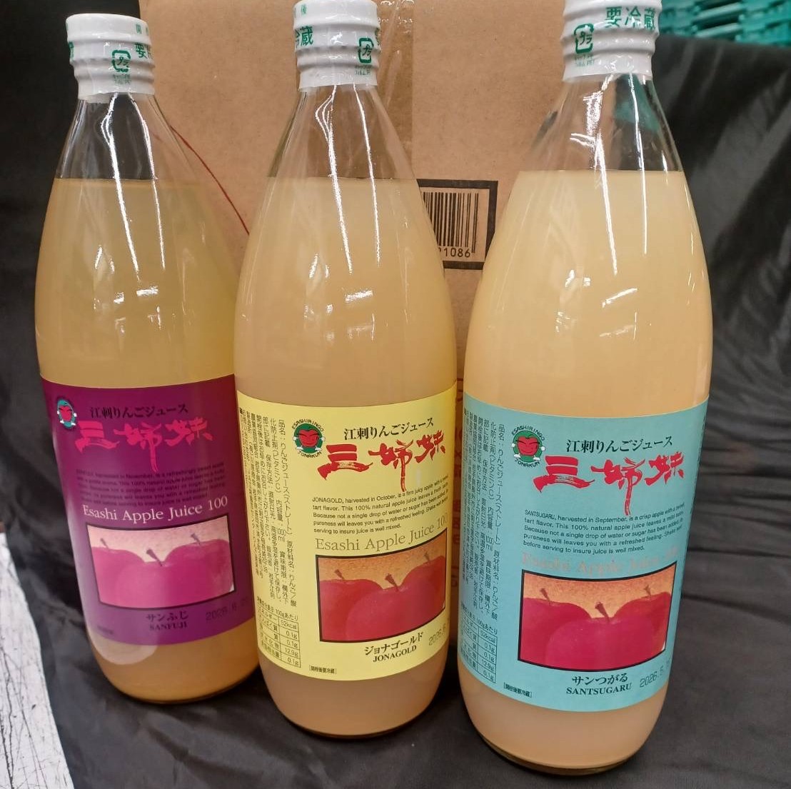 ストレート果汁100%(サンつがる・ジョナゴールド・サンふじ 各1000ml)
