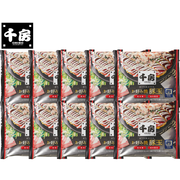 豚玉220g・お好み焼ソース25g・ホワイトソース10g・かつお節1g・アオサ0.2g×各10