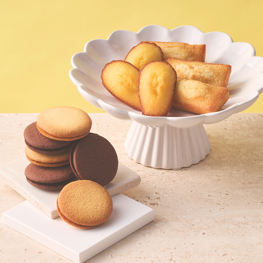 ラムレーズン入りのクリームサンドクッキーに、アンリ・シャルパンティエの自信作フィナンシェとマドレーヌを詰め合せた定番ギフトです。